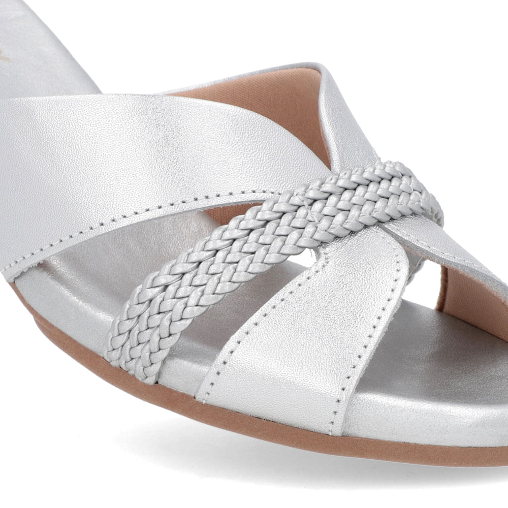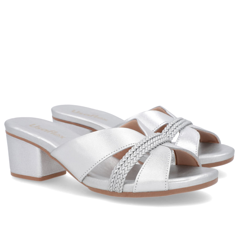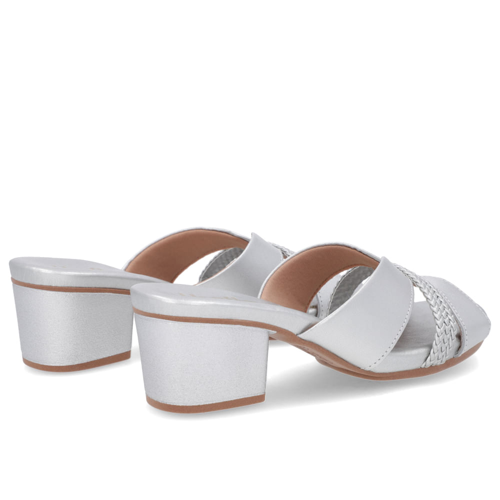 Tamanco cabedal em couro soft slim na cor silver detalhe tranças. O modelo possui tecnologia Couro, com conforto, maciez e durabilidade.