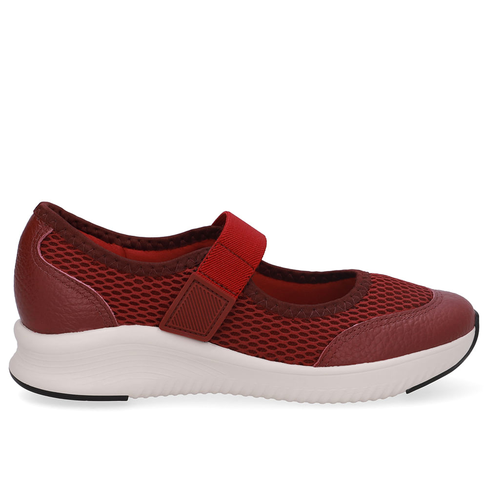 Tênis cabedal em couro e tecido na cor rebu. A palmilha Nuvem proporciona conforto imediato e maciez excepcionais, com design ergonô mico que inclui pontos de acupuntura e um sistema de amortecimento eficaz, garantindo versatilidade e prevenção de dores nos pés.