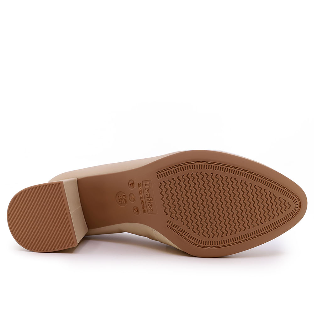 Scarpin salto bloco com cabedal em couro napa comfy na cor vanilla. O modelo possui tecnologia Memória Permanente, com material de capacidade de retorno e mantêm o formato dos seus pés na palmilha.