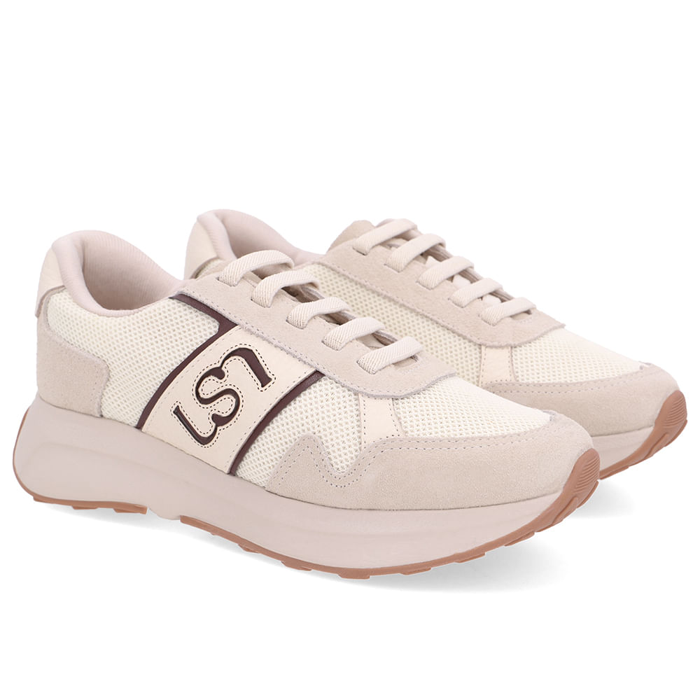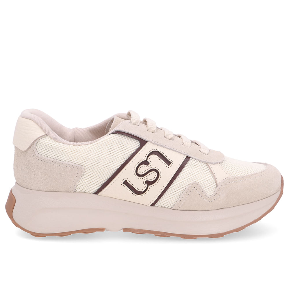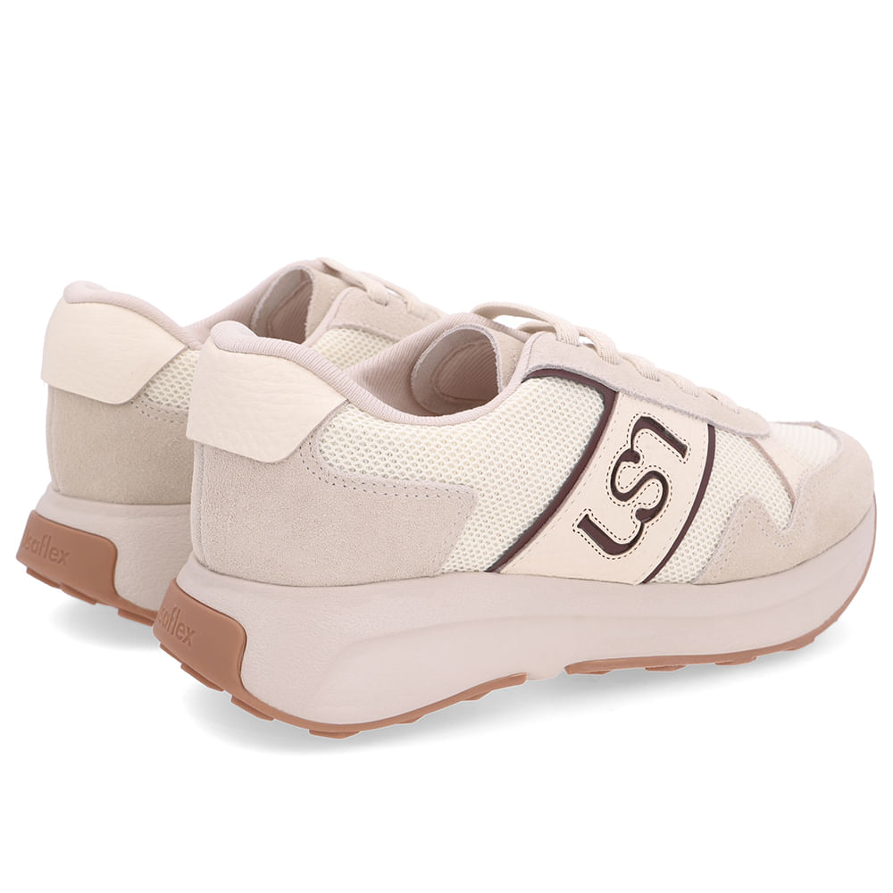 Tênis com cabedal em couro camurça gelo, tecido na cor marfim, com detalhe em Relax Catalano. Design anatômico pensado para tornar o momento de calçar mais fácil e prático.