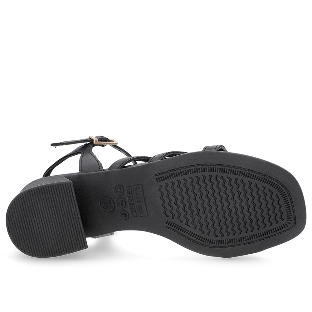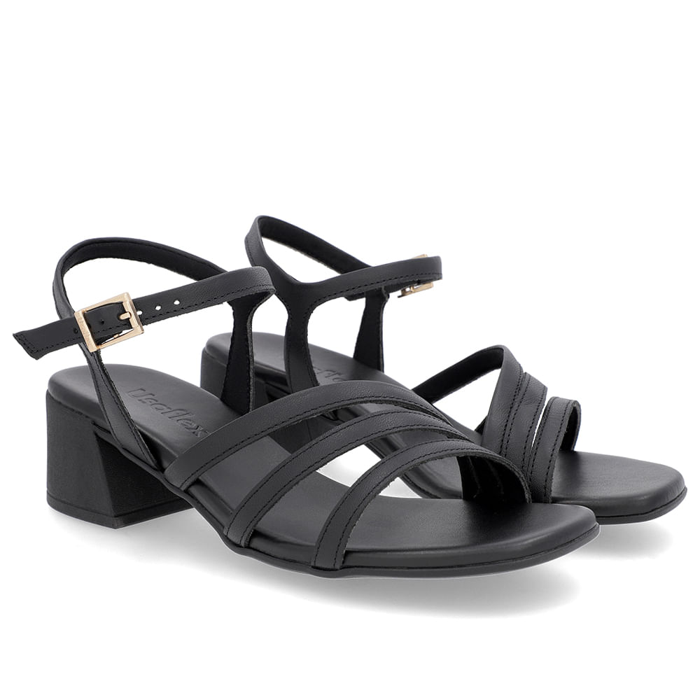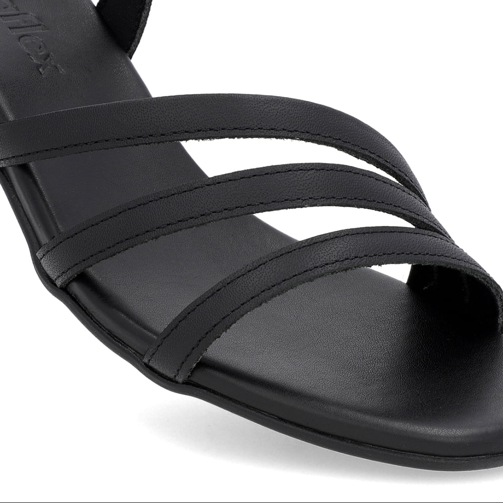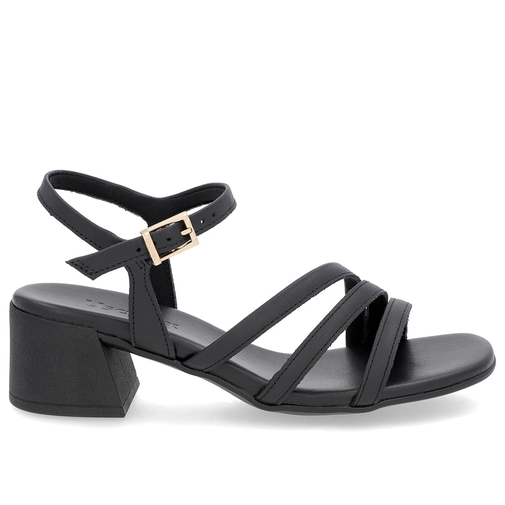 Sandália Salto Bloco Couro Preta Tiras