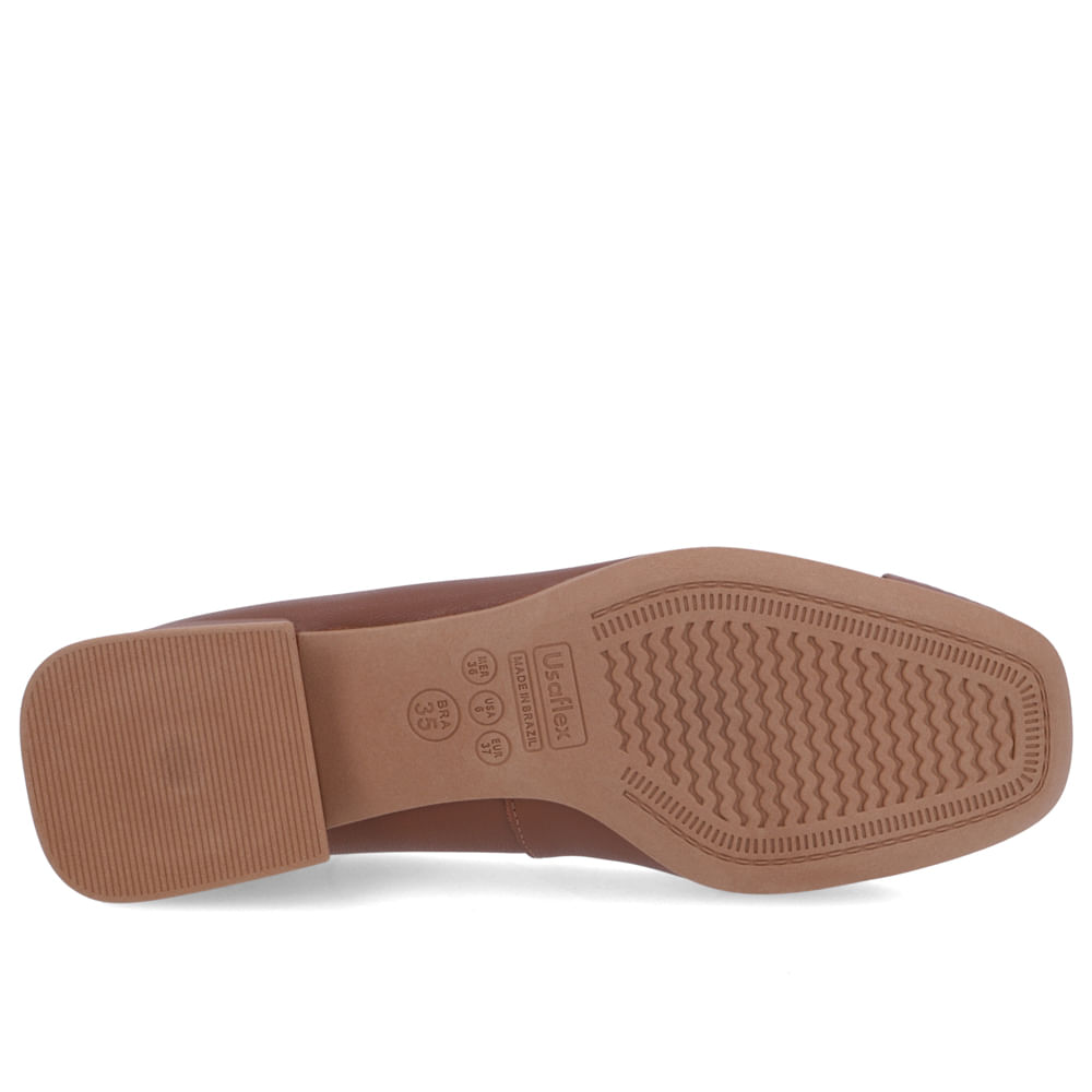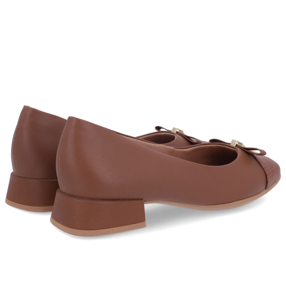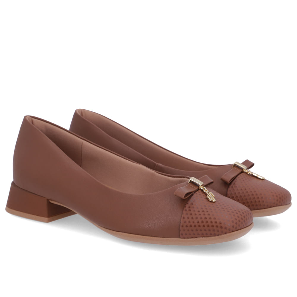 Scarpin salto bloco cabedal em couro escama e napa valise na cor canela. O modelo possui tecnologia +Bem-Estar, com espumas posicionadas em pontos estratégicos na palmilha garantindo conforto e suavidade na pisada.