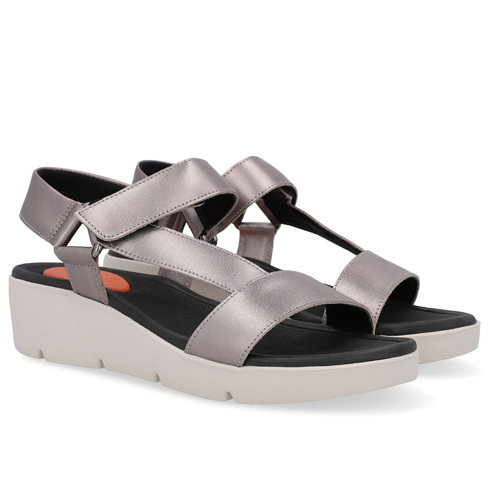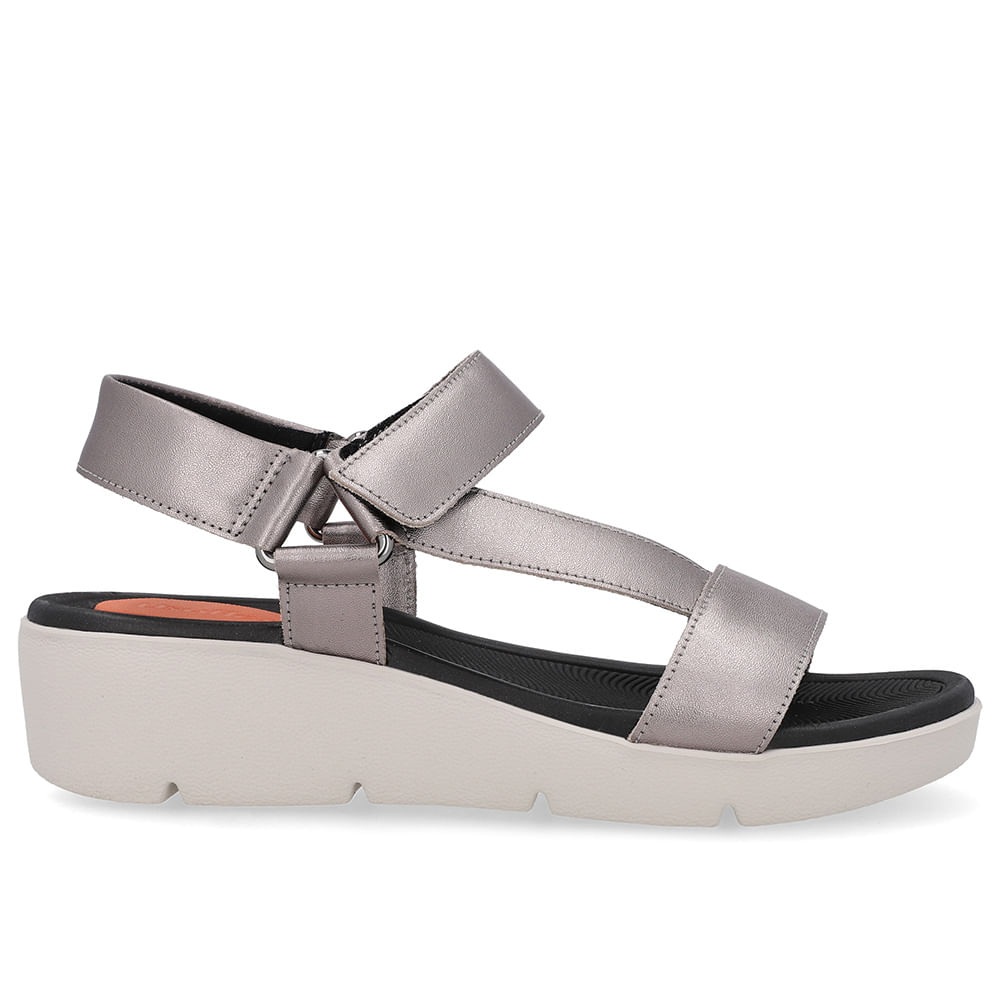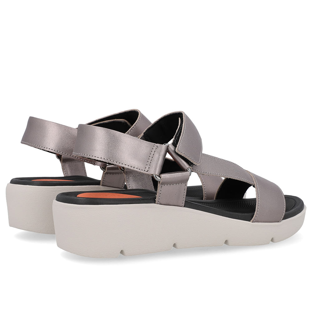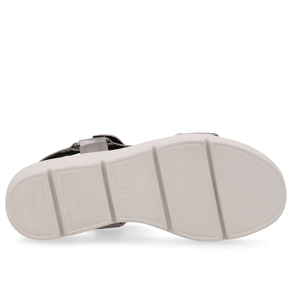 Sandália cabedal em couro soft slim na cor aço. O modelo possui tecnologia Amortecedor, com uma gota de borracha em sua palmilha para amortecer o impacto da pisada.