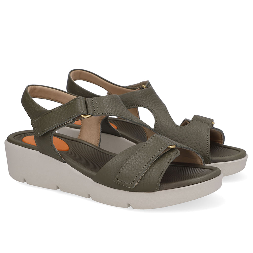 andália cabedal em couro relax catalano na cor oliva. Pés mais leves e confortáveis com uma tecnologia de amortecimento surpreendente, que reduz o impacto e proporciona maciez. Uma combinação de materiais que garante adaptação a todos os tipos de caminhar.