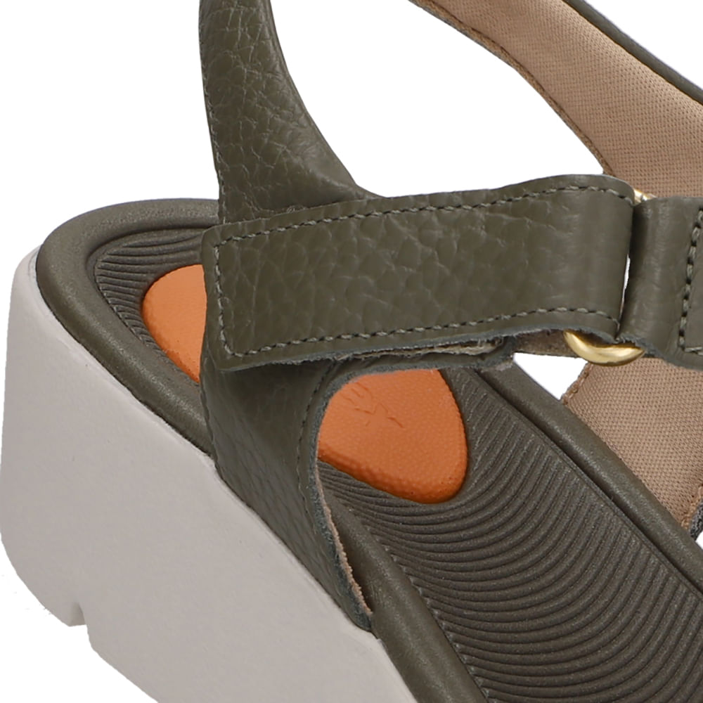 Sandália Plataforma Couro Verde Ajuste Fecho-Flex