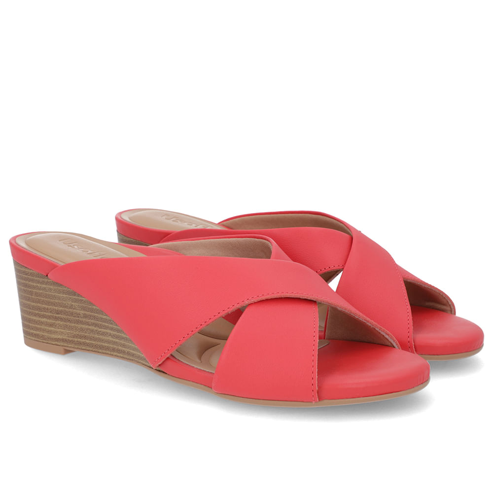 Tamanco cabedal em couro napa valise na cor vermelho scarlet. A Tecnologia Arcoflex oferece estrutura que preenche a região do arco plantar, auxiliando no alívio de possíveis dores nas regiões dos pés, tornozelos e pernas.