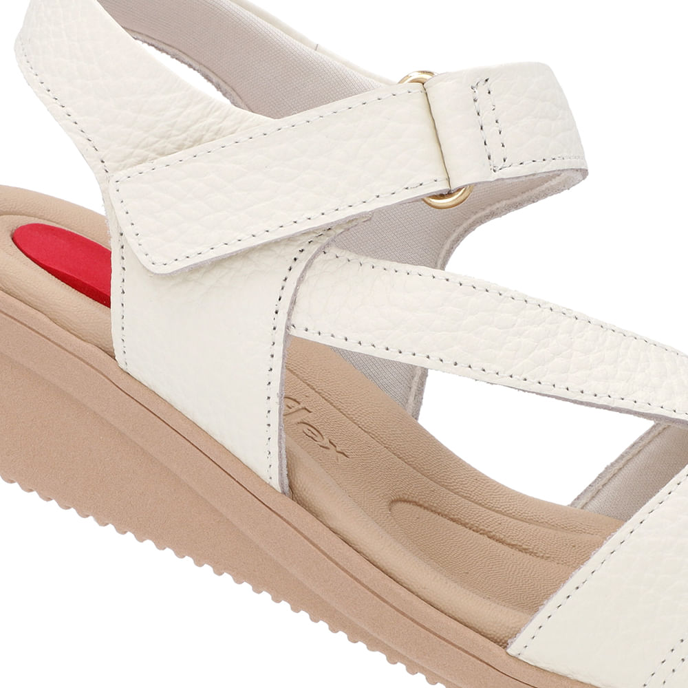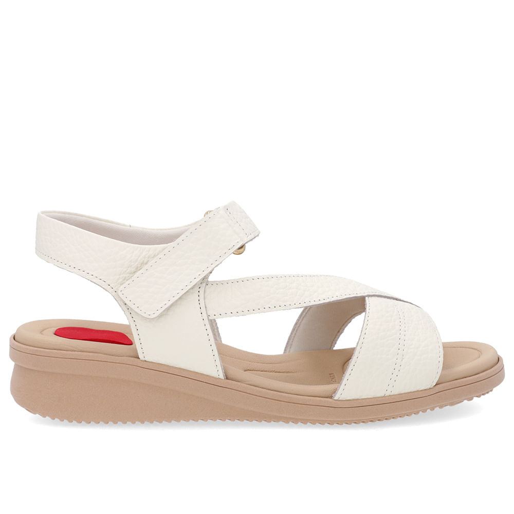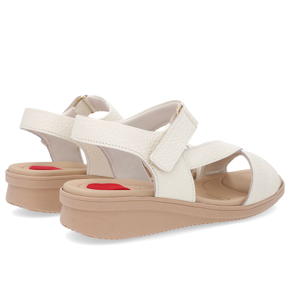 Sandália cabeda em couro relax catalano na cor marfim. O modelo possui tecnologia Menor Impacto, proporcionando amortecimento no calcanhar e na planta do pé, oferecendo conforto principalmente para pessoas com esporão de calcâneo e metatarsalgia.