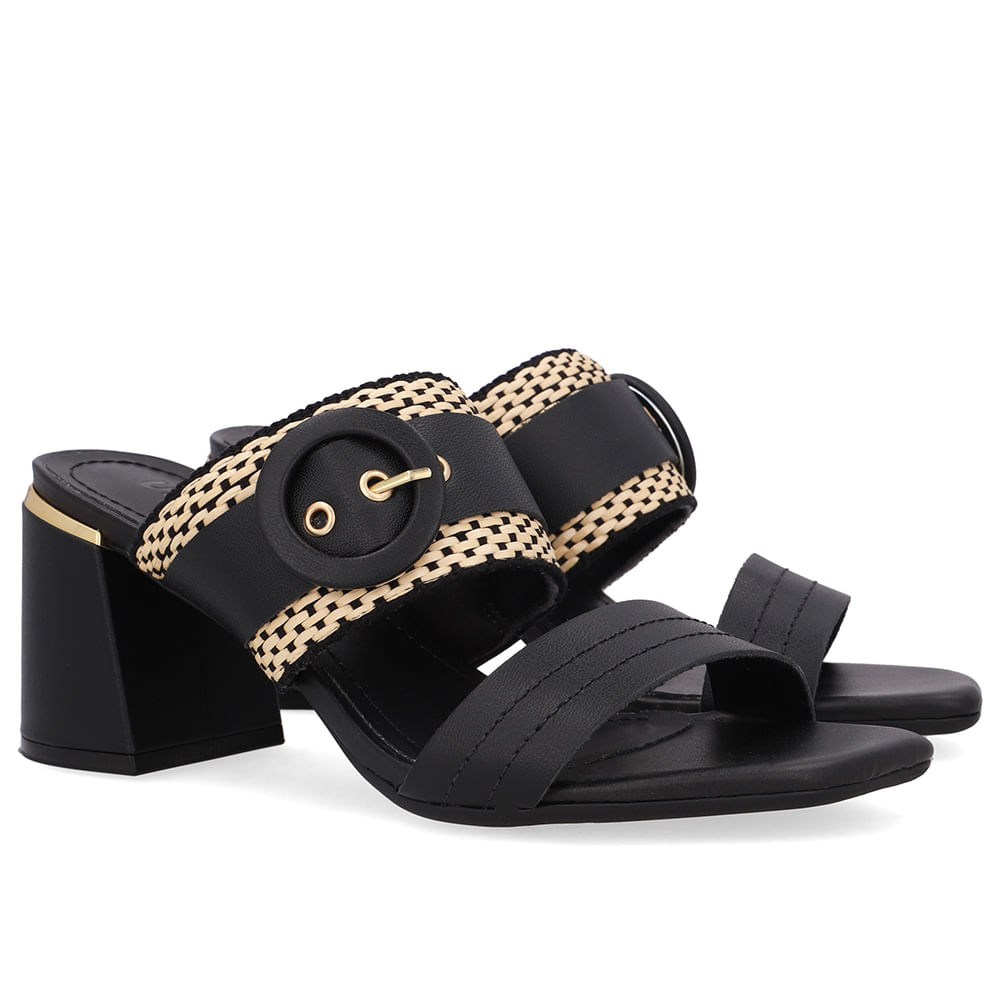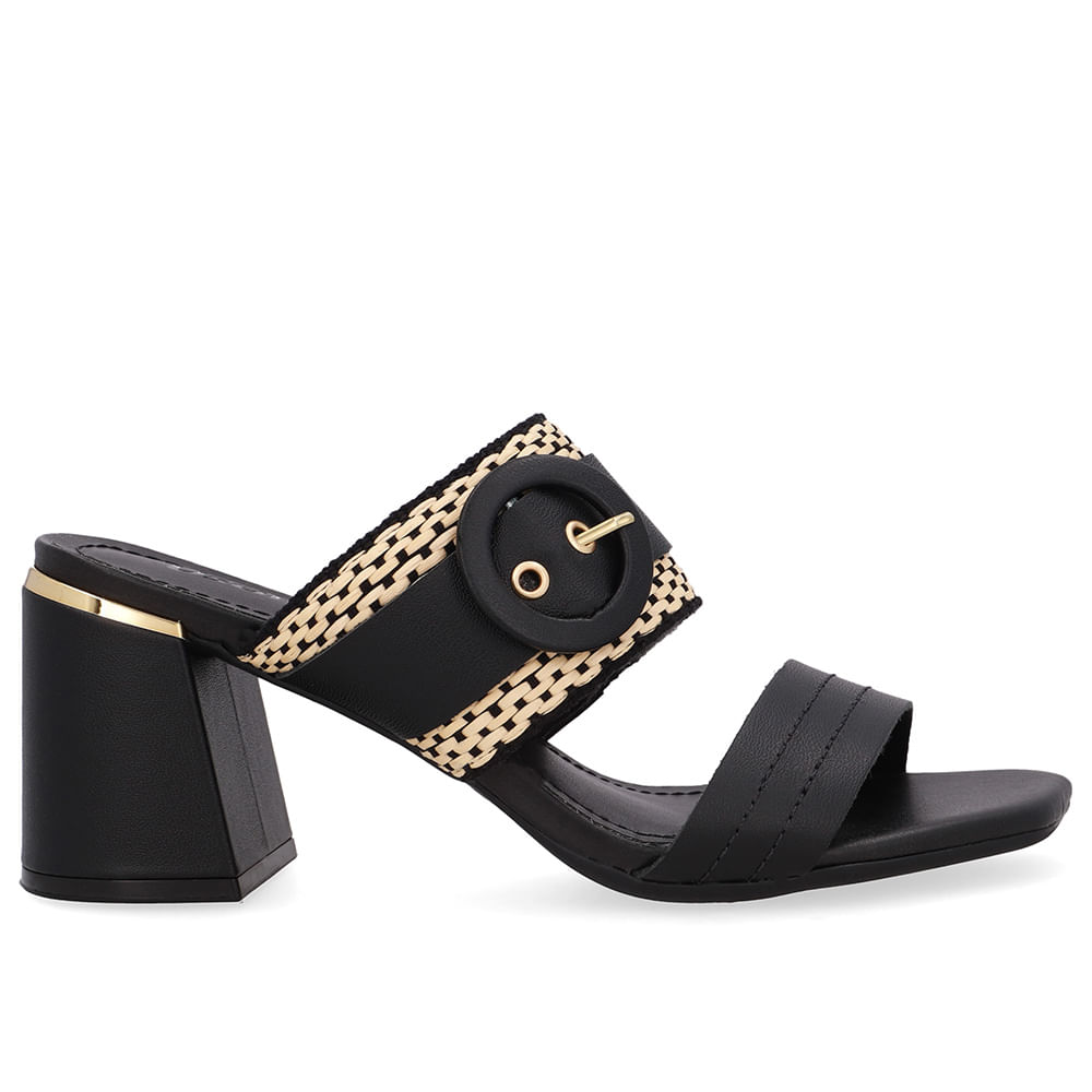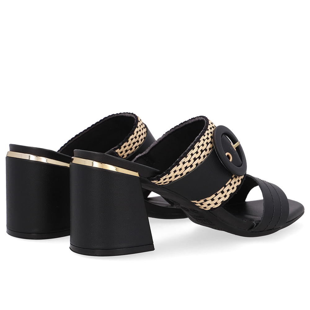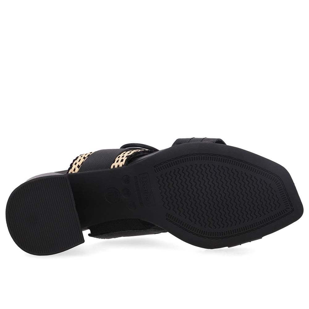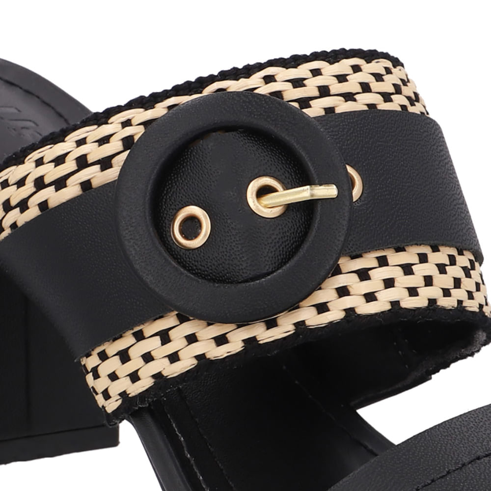 Tamanco cabedal em couro napa valise na cor preto e detalhes em palha transadas. O modelo possui tecnologia Antibacteriano, com forro que reduz a propagação de fungos e bactérias.