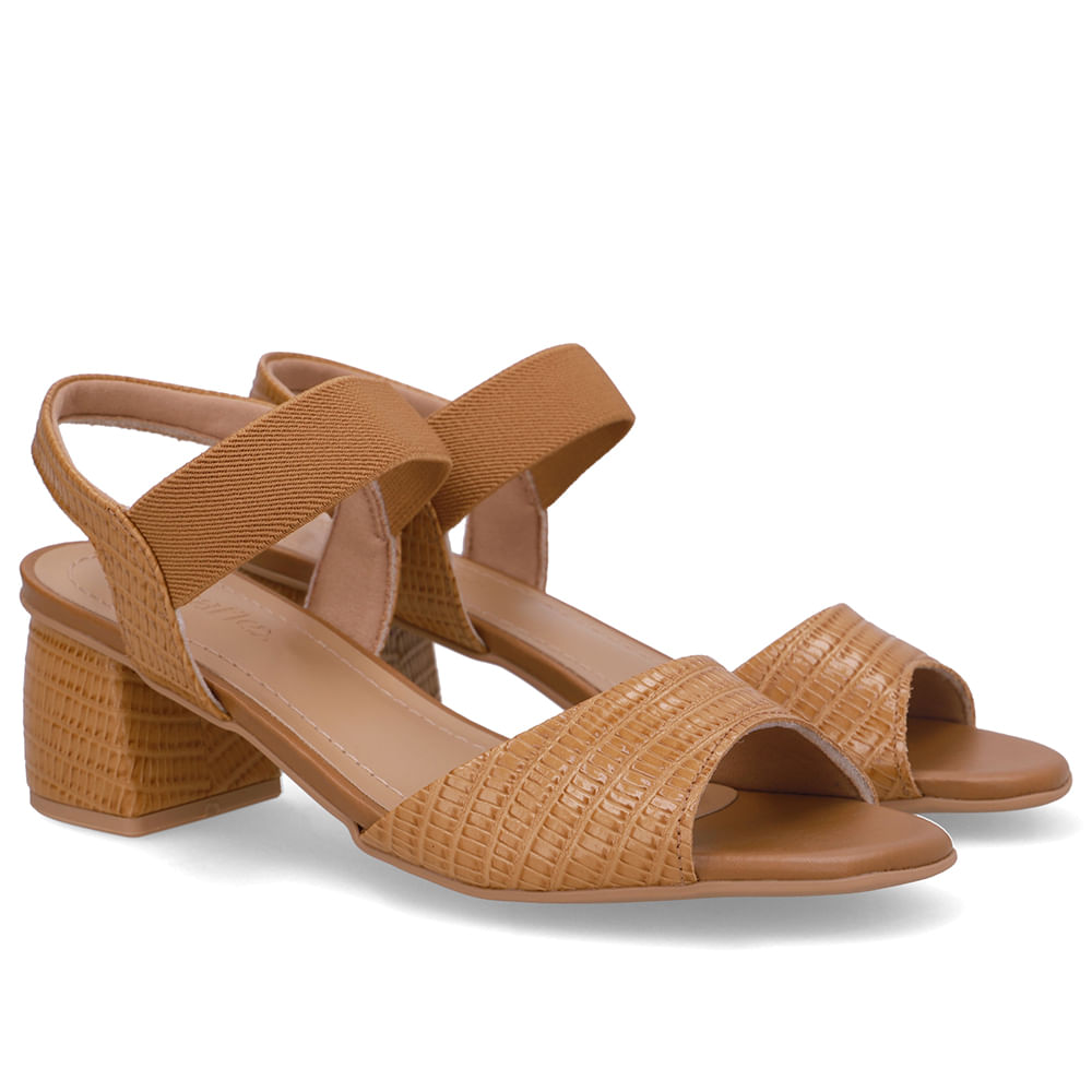 Sandália cabedal em couro new lezard na cor tan. Design anatômico pensado para tornar o momento de calçar mais fácil e prático.