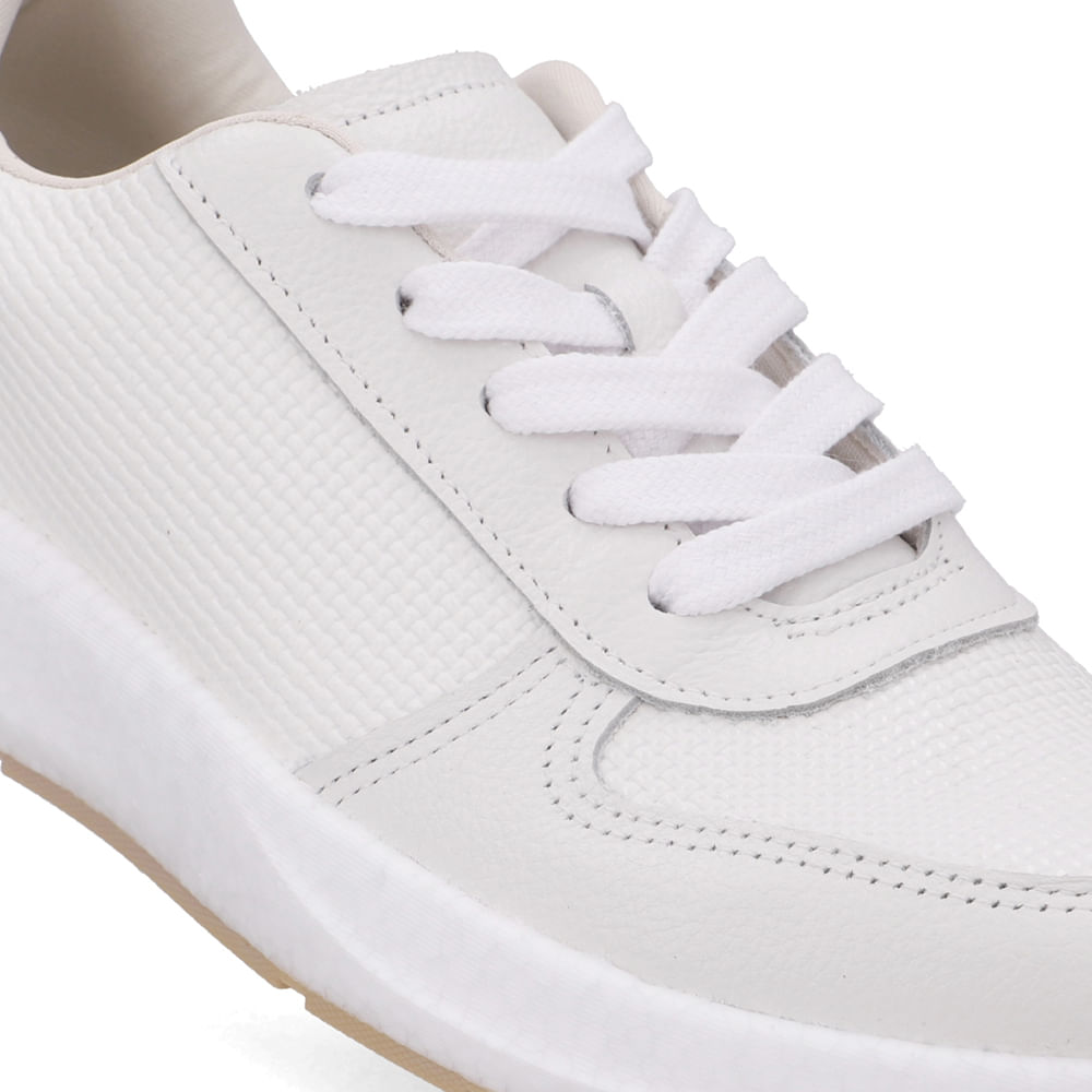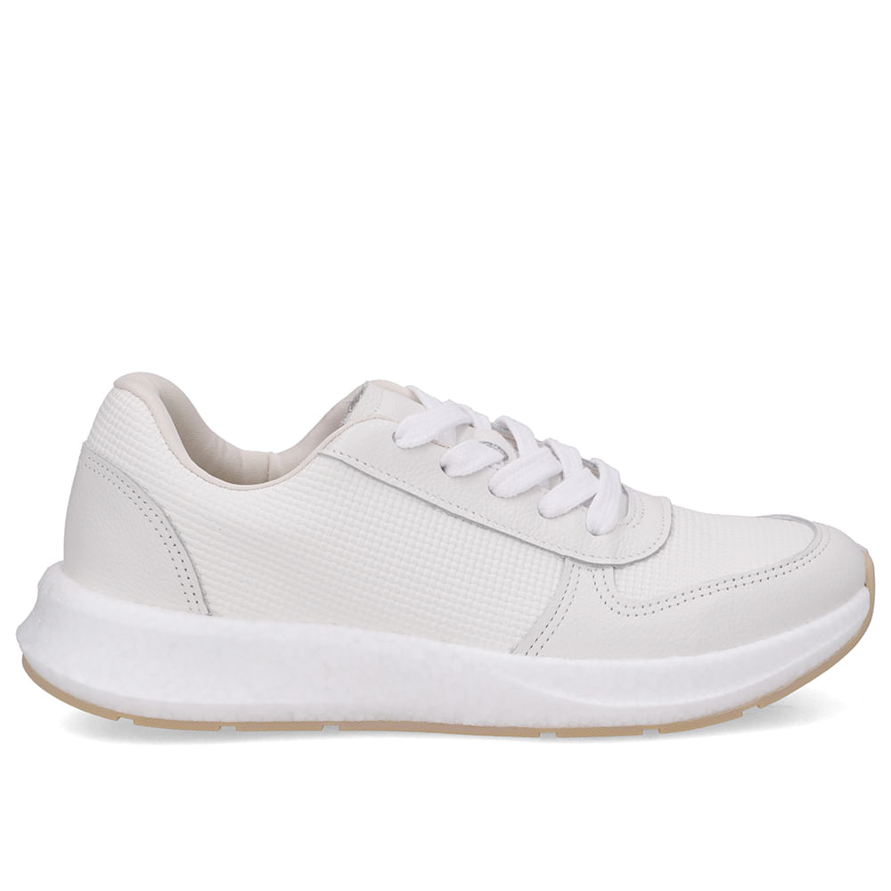 Tênis cabedal em couro granatto na cor branco. Tecnologia que traz o equilíbrio perfeito entre leveza e conforto com o amortecimento inteligente. Absorve com resistência e flexibilidade para uma caminhada mais fluida e cheia de bem-estar.