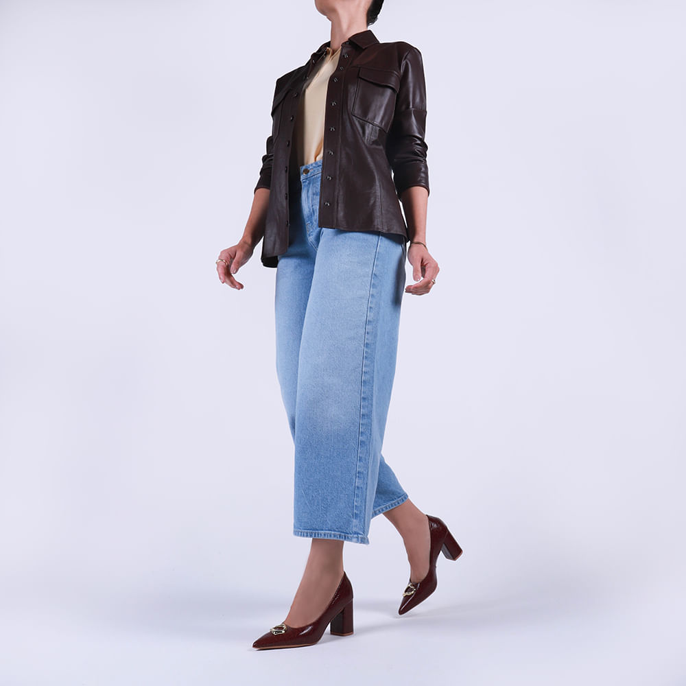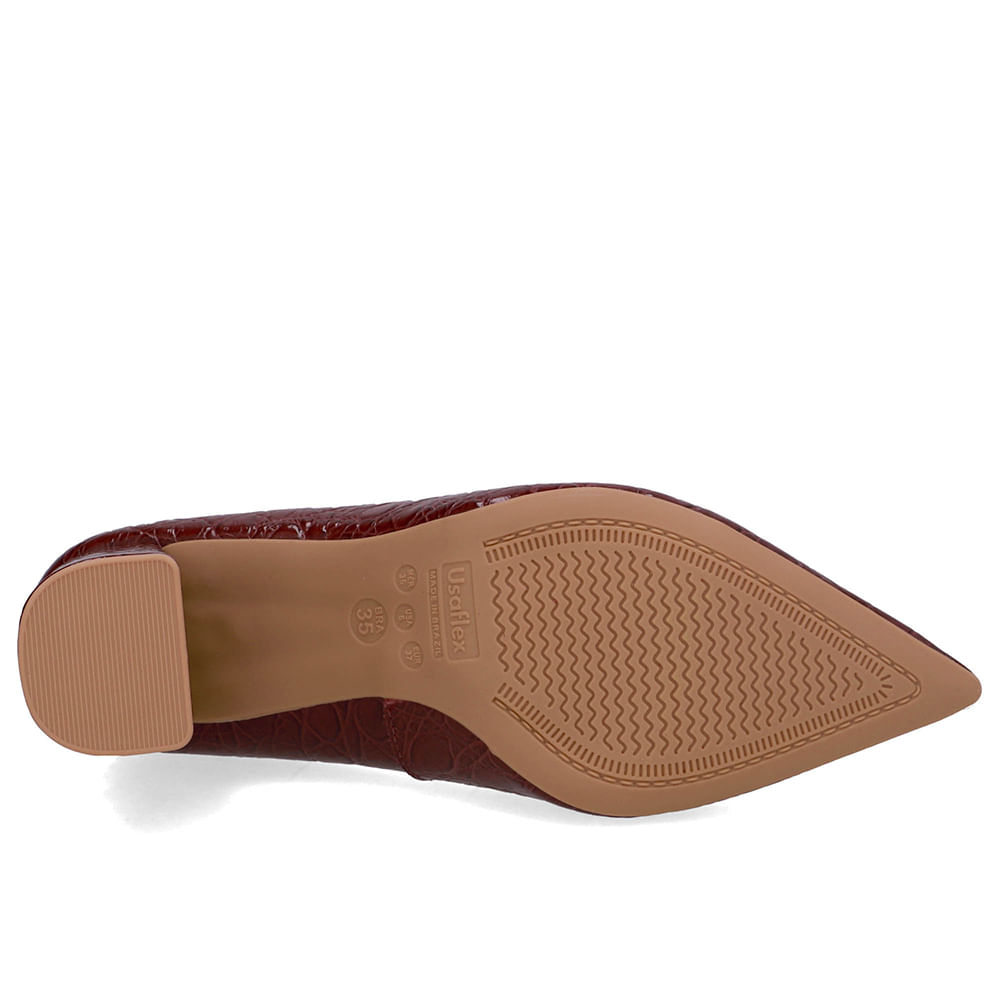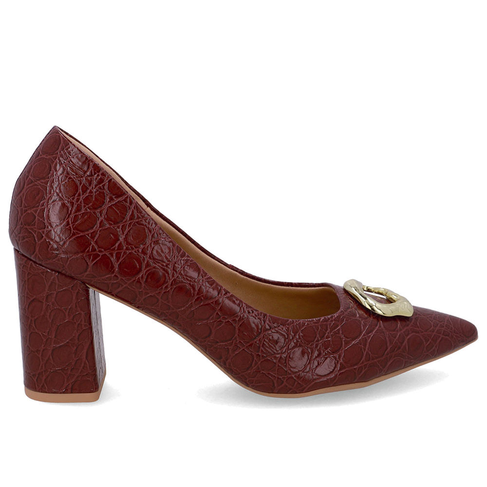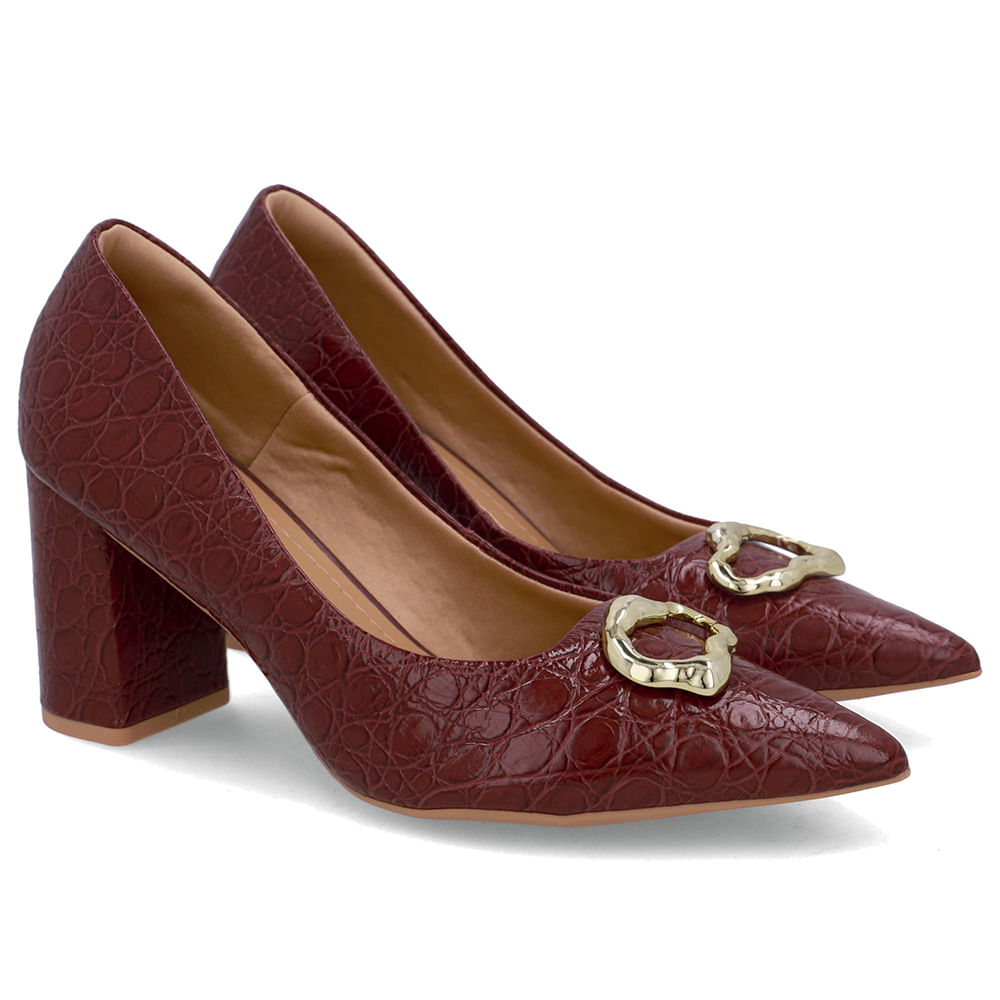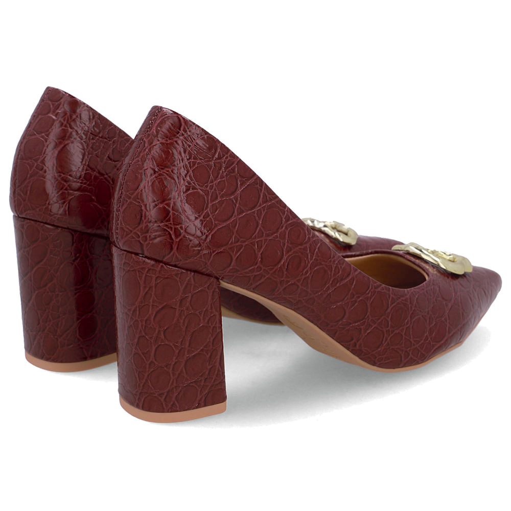 Scarpin cabedal em couro croco lux na cor burgundy. O toque macio do couro abraça os pés, e sua resistência garante conforto em cada passo por muito mais tempo.