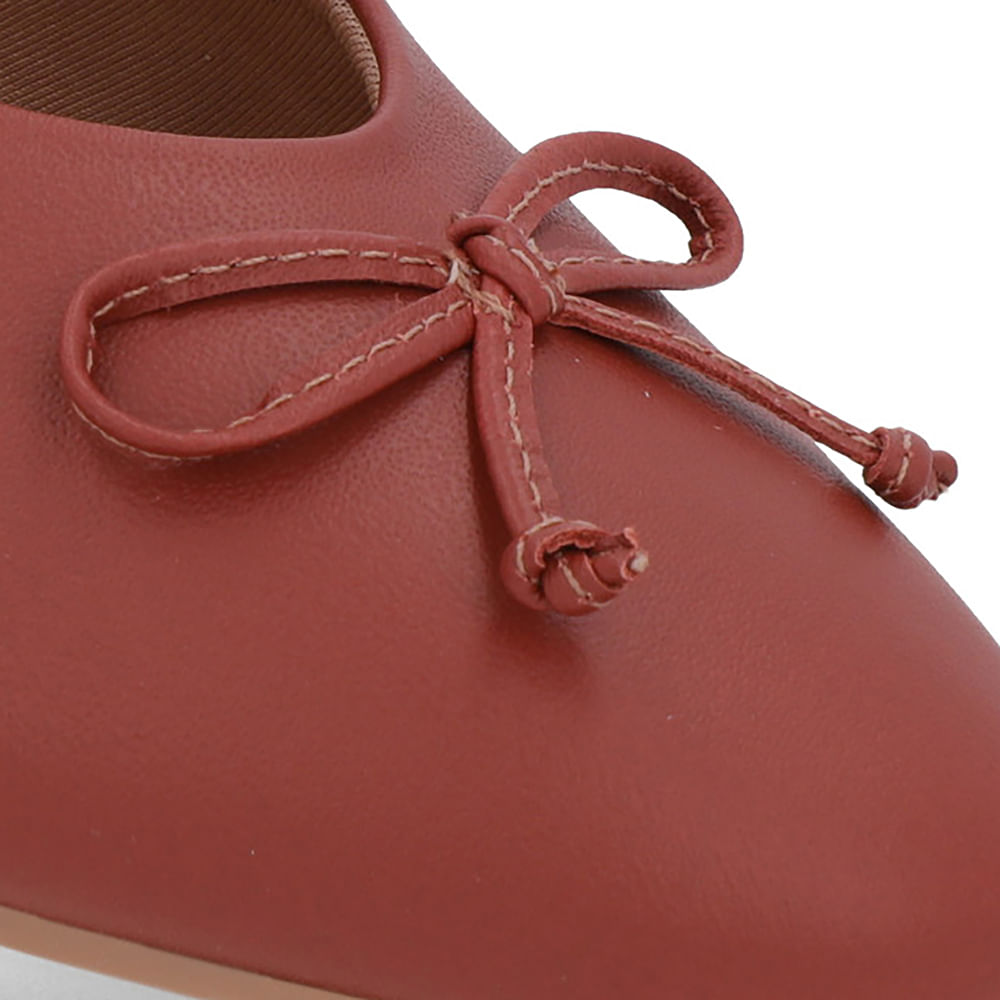 Sapatilha cabedal em couro napa valise na cor terracota. O modelo possui tecnologia +Bem-Estar, com espumas posicionadas em pontos estratégicos na palmilha garantindo conforto e suavidade na pisada.
