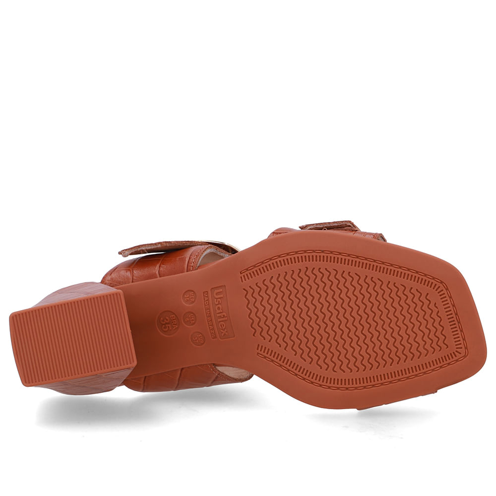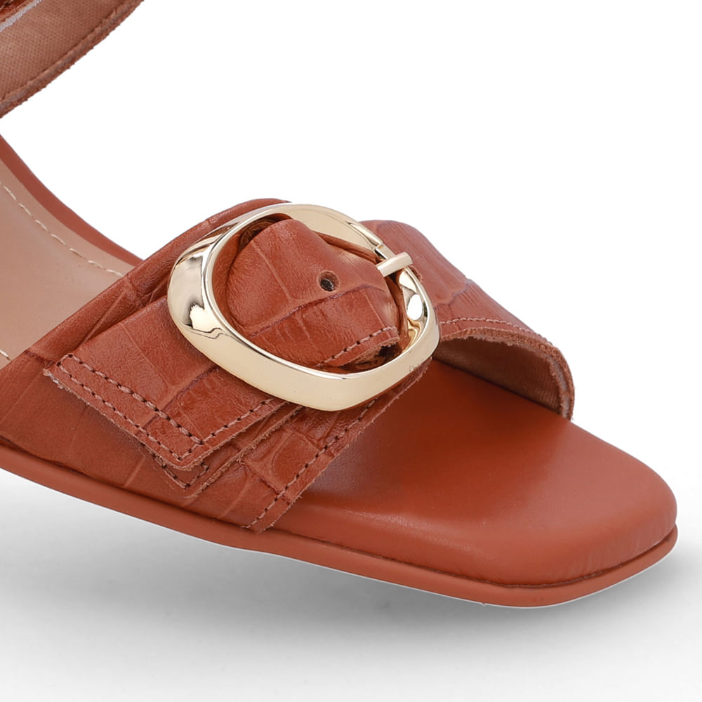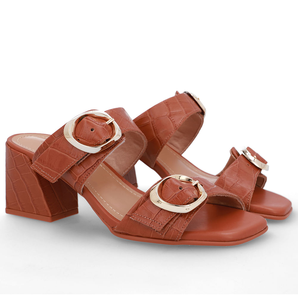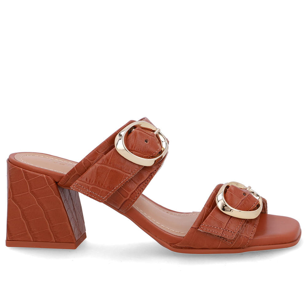 Tamanco cabedal em couro big croco na cor doce de leite. O modelo possui tecnologia Couro, com conforto, maciez e durabilidade.
