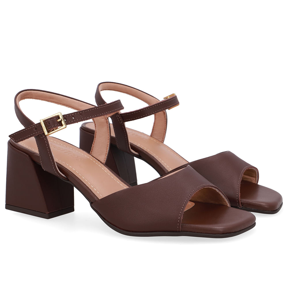 Sandália Salto Bloco Marrom Pinhão