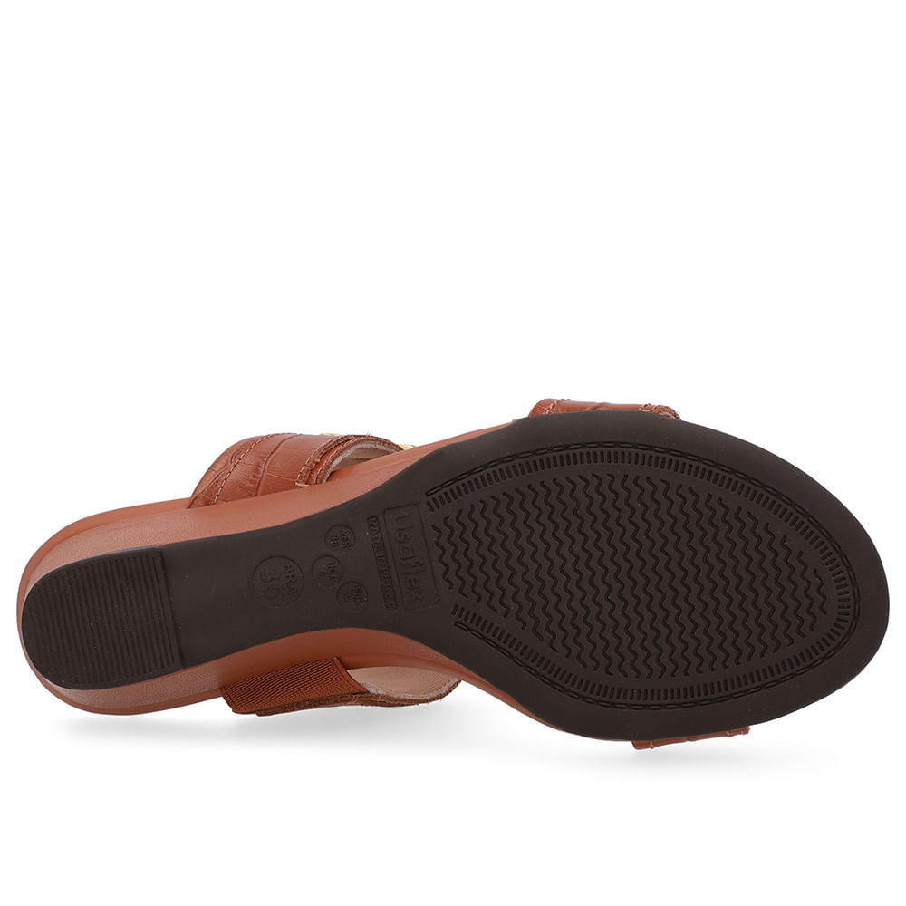 Tamanco cabedal em couro big croco na cor doce de leite. O modelo possui tecnologia +Bem-Estar, com espumas posicionadas em pontos estratégicos na palmilha garantindo conforto e suavidade na pisada.