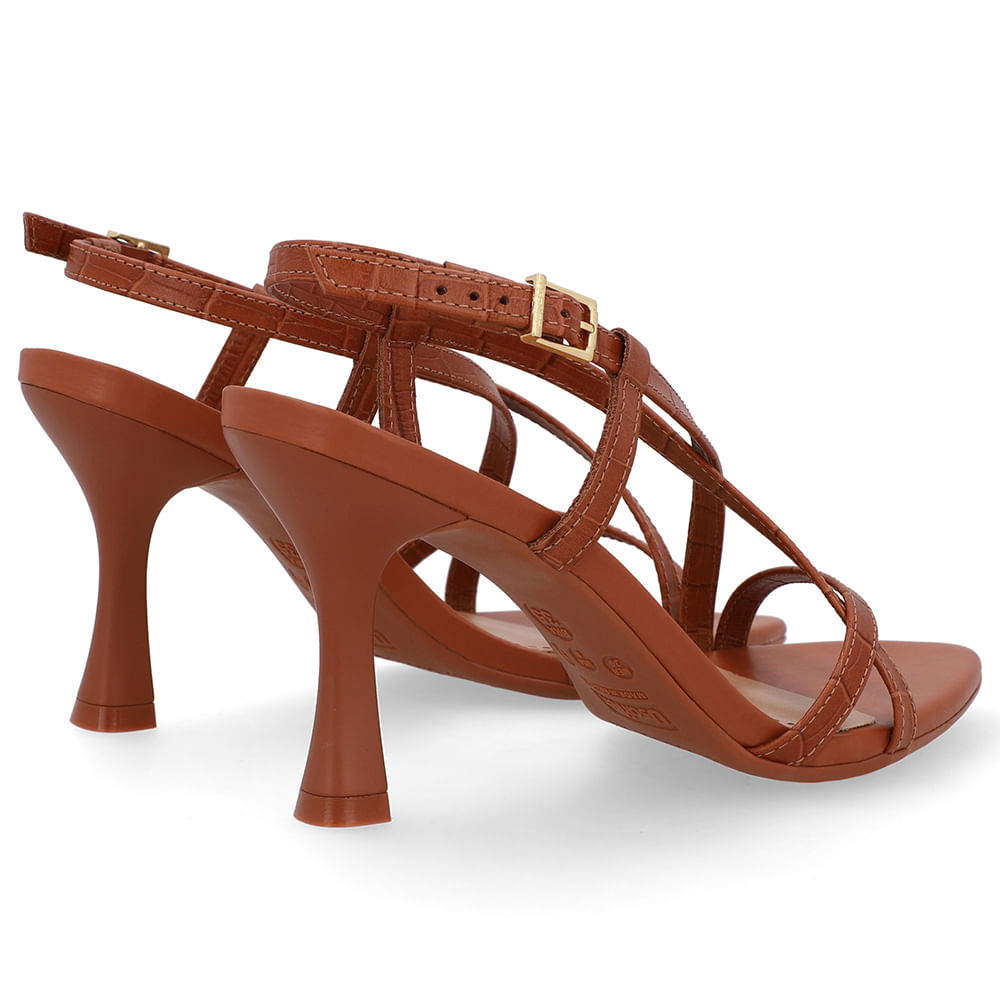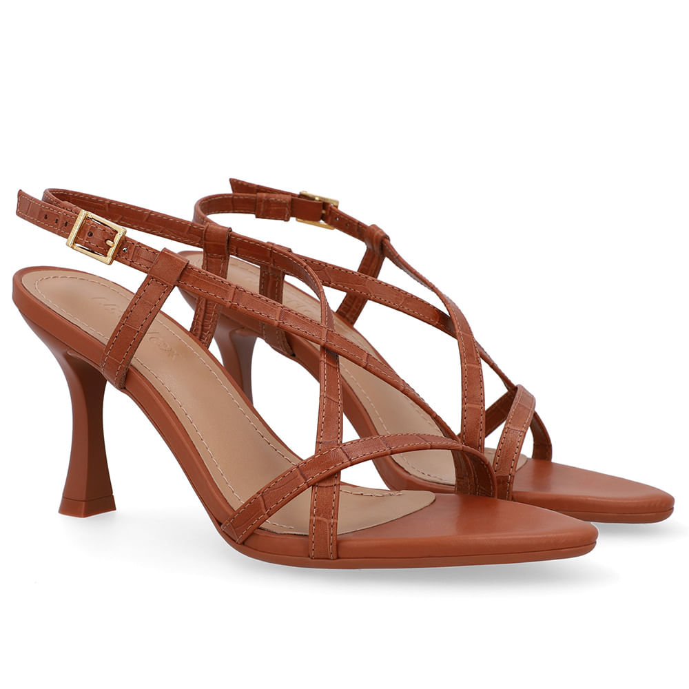 Sandália cabedal em couro big croco na cor doce de leite.O modelo possui tecnologia Couro, com conforto, maciez e durabilidade.