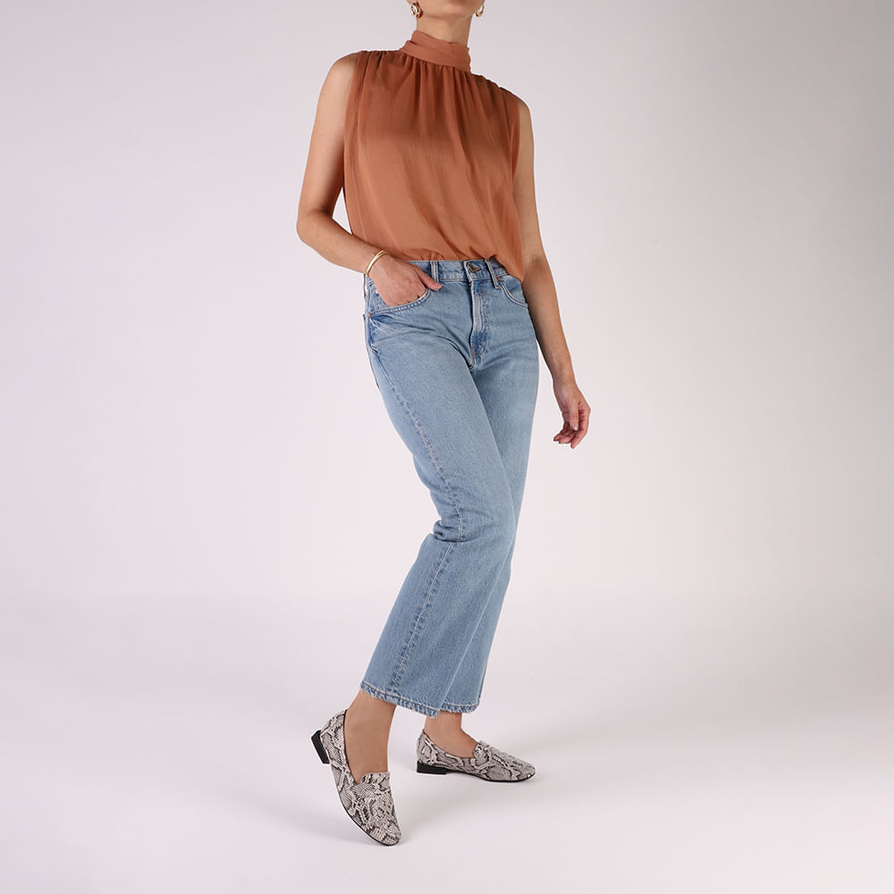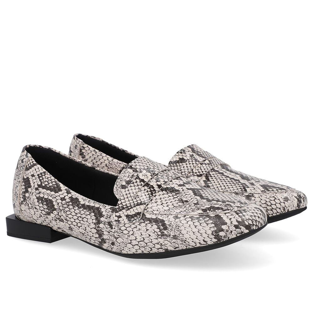 Loafer cabedal em couro animal print na cor cobra natural. O modelo possui tecnologia +Bem-Estar, com espumas posicionadas em pontos estratégicos na palmilha garantindo conforto e suavidade na pisada.
