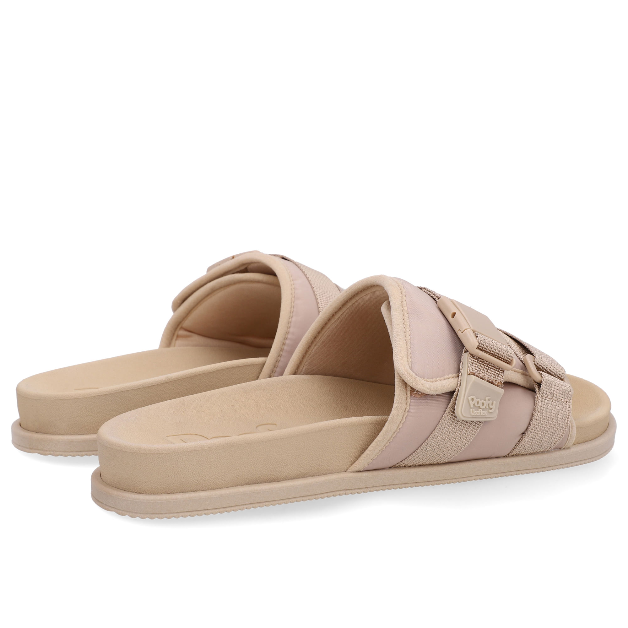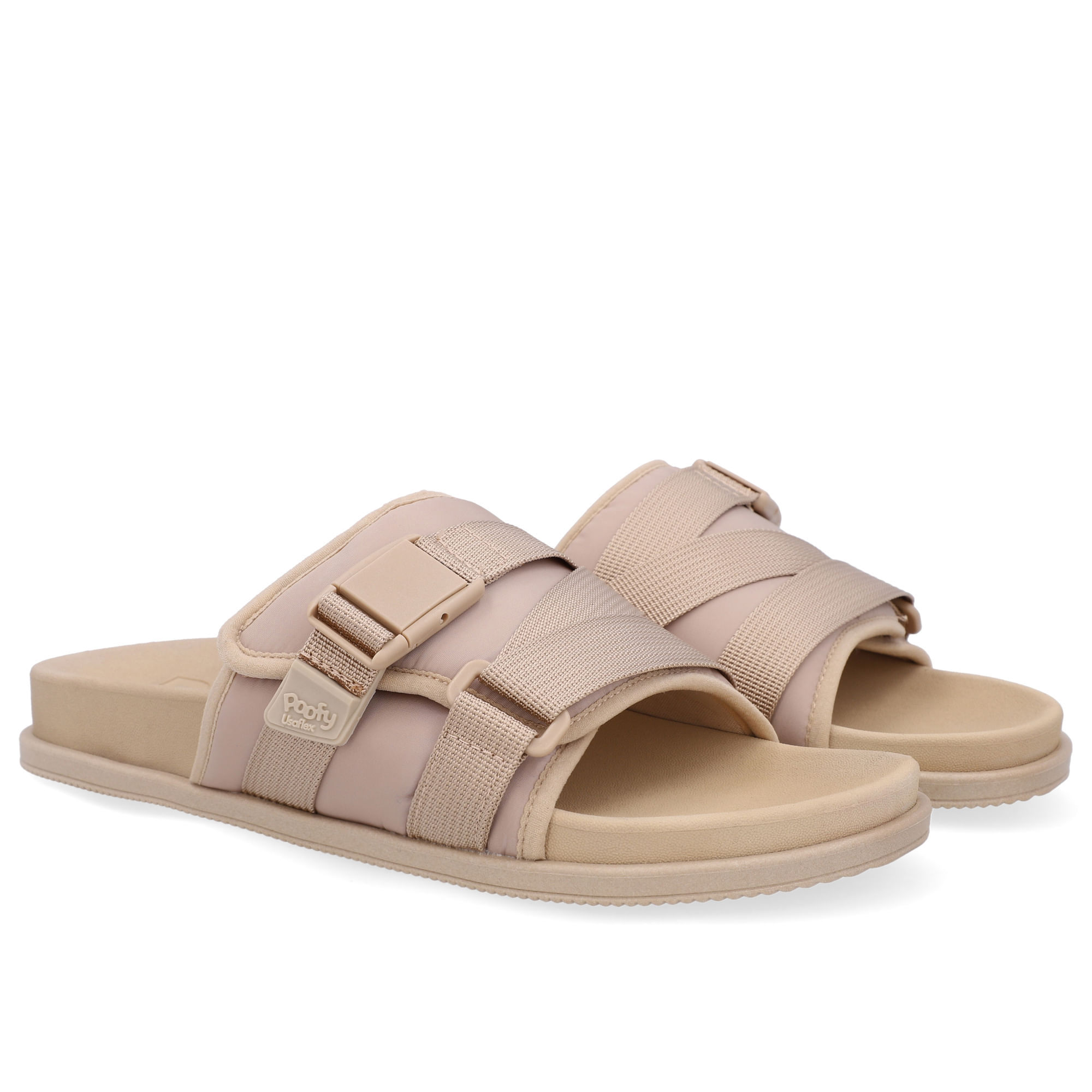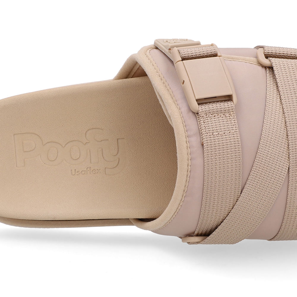 Slide Plataforma Poofy Bege Tira Nylon