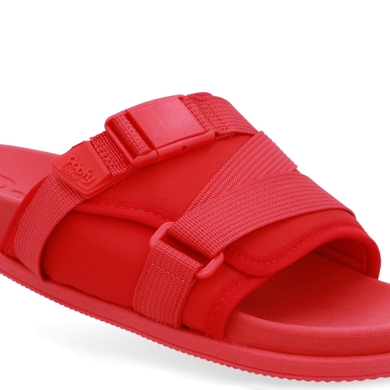 Tamanco com cabedal em nylon vermelho rouge, fechamento prático e solado em PVC, leve e flexível. Confortável e estiloso, é perfeito para o dia a dia, oferecendo conforto e praticidade em cada passo.
