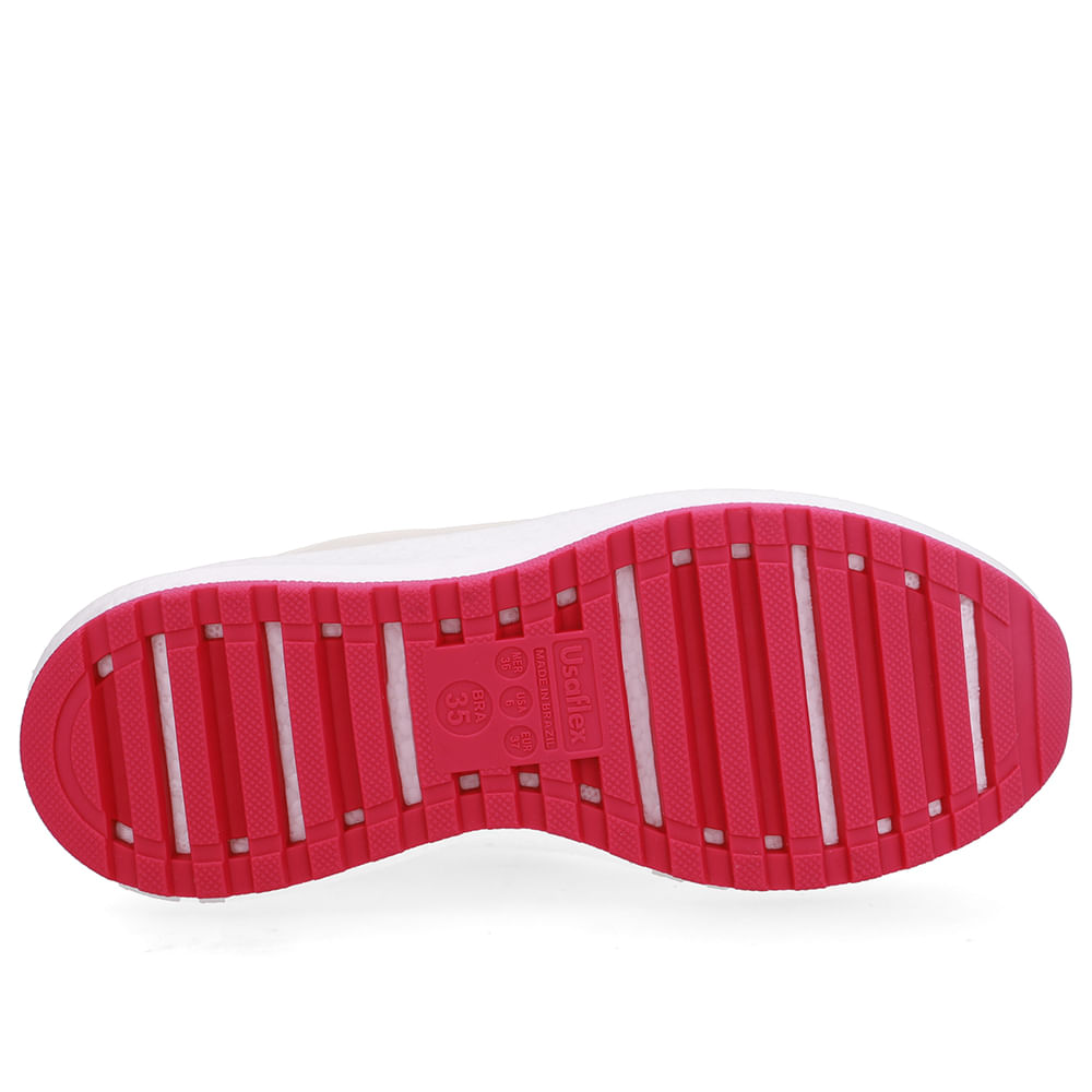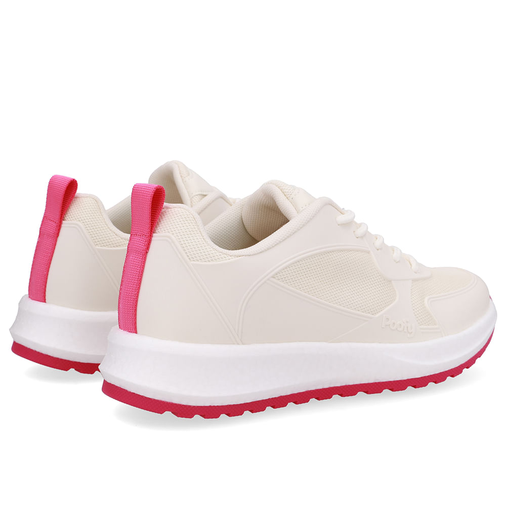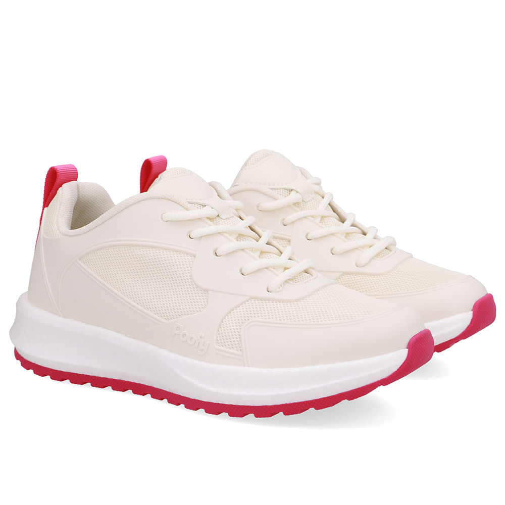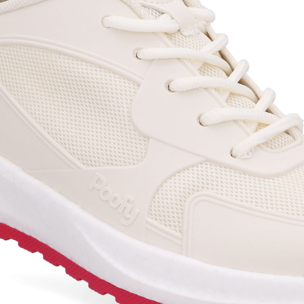 Tênis com cabedal emborrachado e tecido bege, solado em ETPU para leveza e amortecimento, e TR para maior aderência e durabilidade. Ideal para quem busca estilo, conforto e performance em atividades diárias ou esportiva