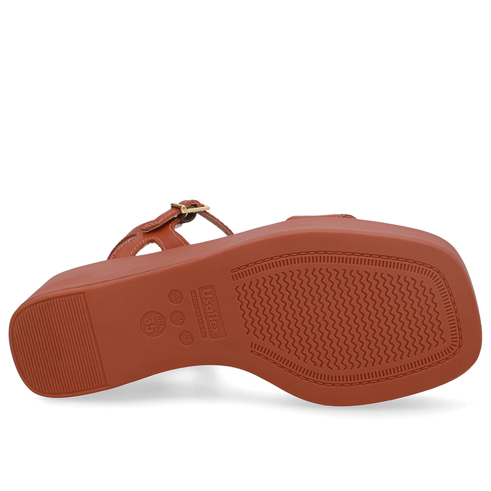 Sandália plataforma, cabedal em couro napa valise na cor doce de leite. O modelo possui tecnologia Couro, com conforto, maciez e durabilidade.