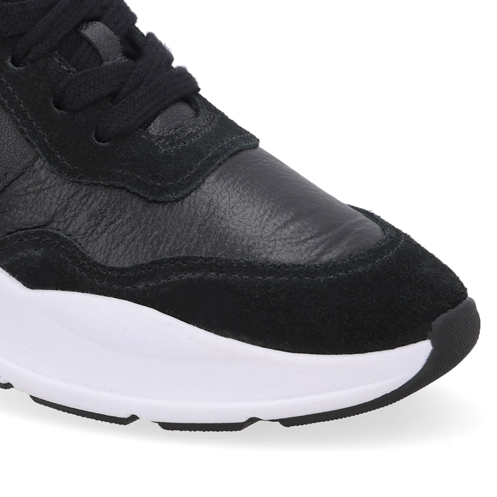 Tênis cabedal multi materiais na cor preto.A palmilha Nuvem proporciona conforto imediato e maciez excepcionais, com design ergonômico que inclui pontos de acupuntura e um sistema de amortecimento eficaz, garantindo versatilidade e prevenção de dores nos pés.