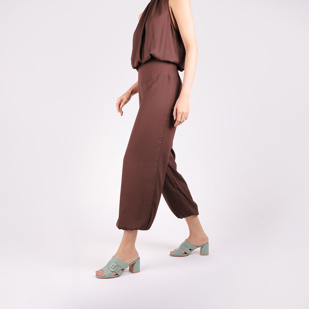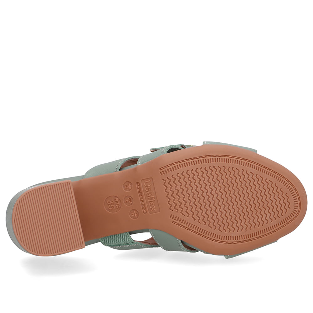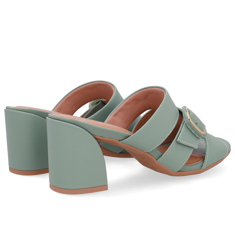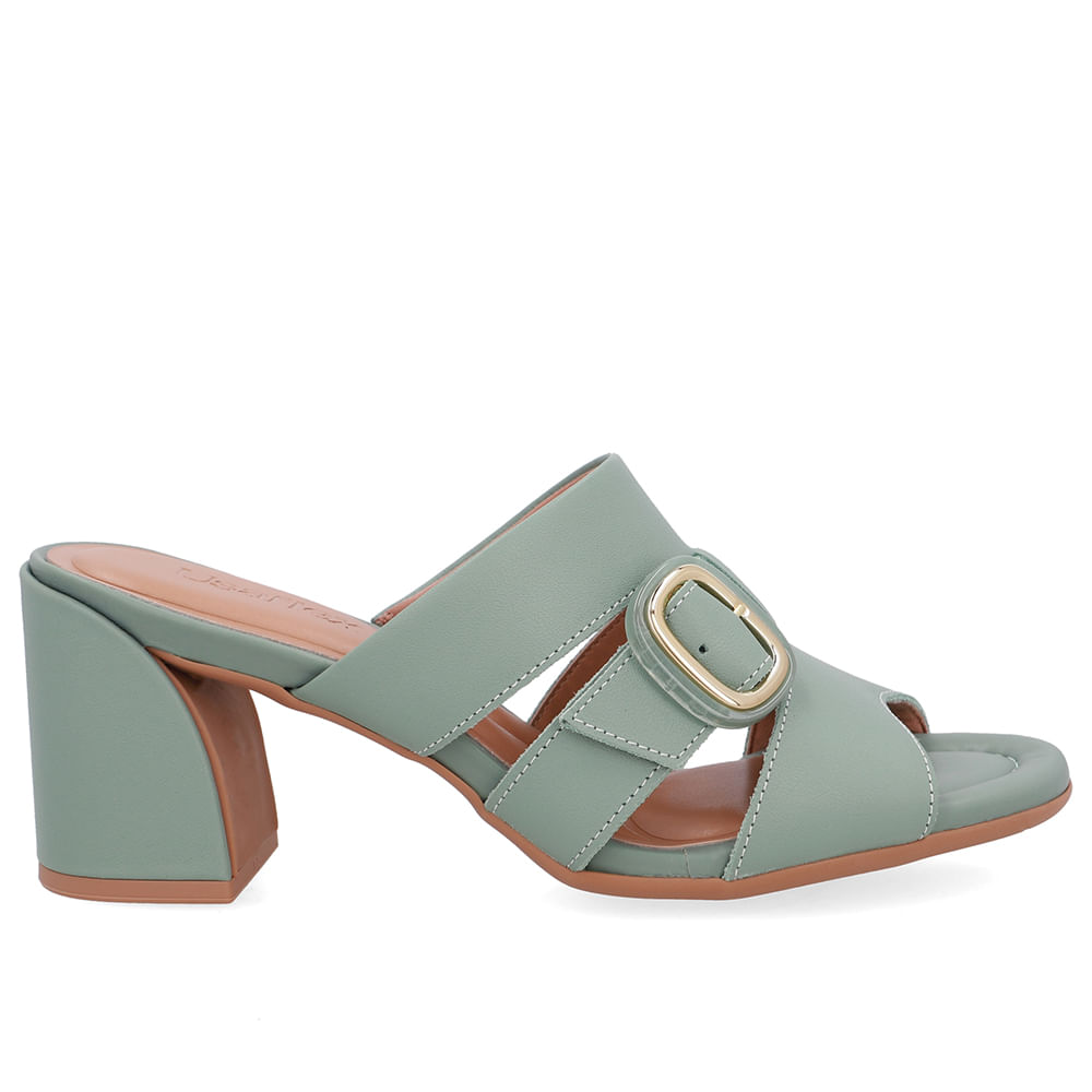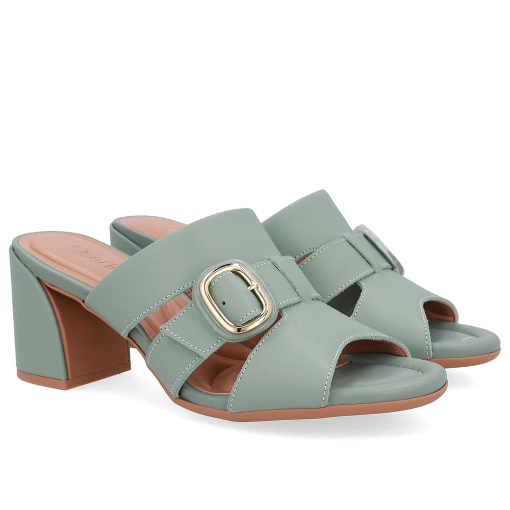 Tamanco cabedal em couro napa valise na cor verde matcha. O modelo possui tecnologia +Bem-Estar, com espumas posicionadas em pontos estratégicos na palmilha garantindo conforto e suavidade na pisada.