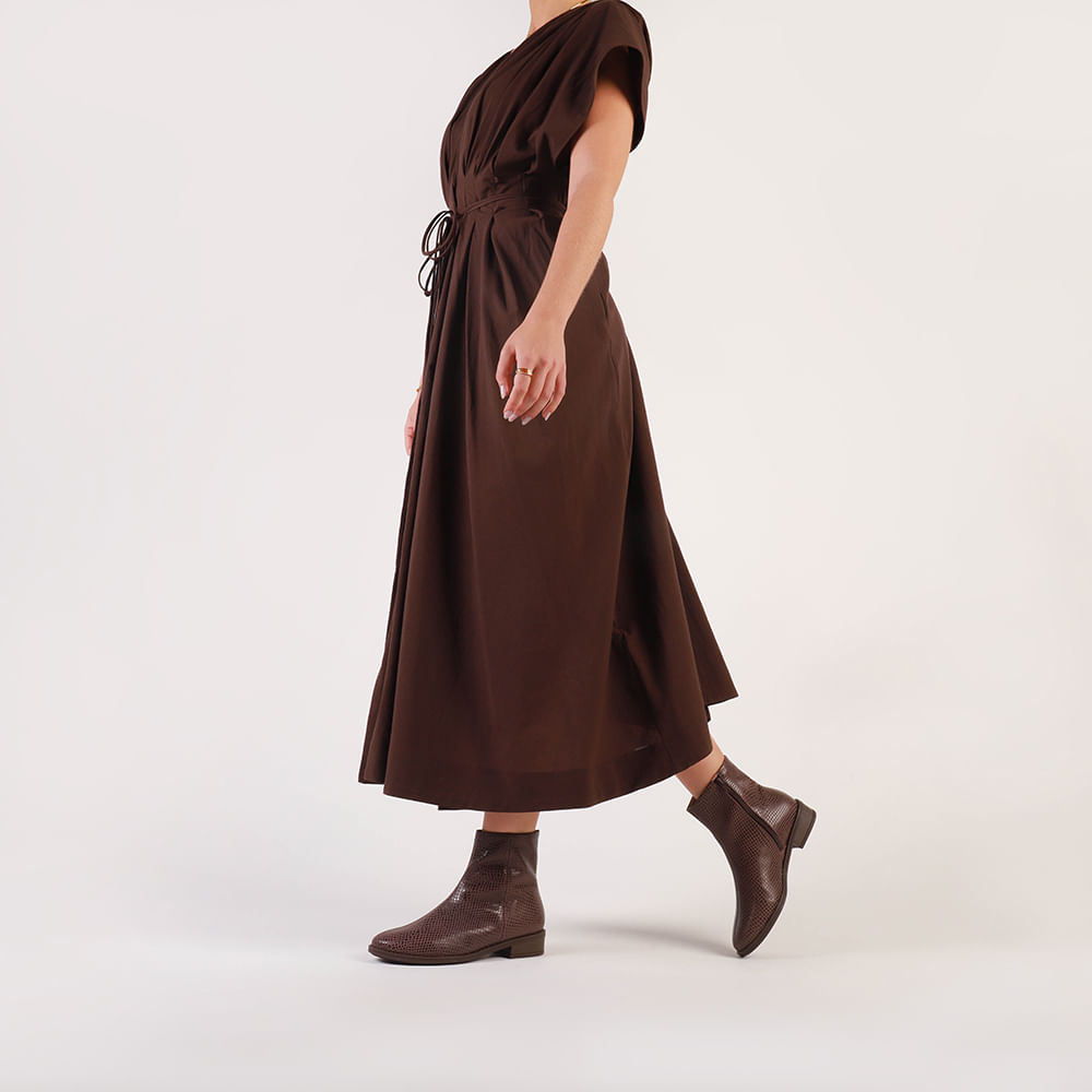 Bota cabedal em couro new escama na cor pinhão. O toque macio do couro abraça os pés, e sua resistência garante conforto em cada passo por muito mais tempo.