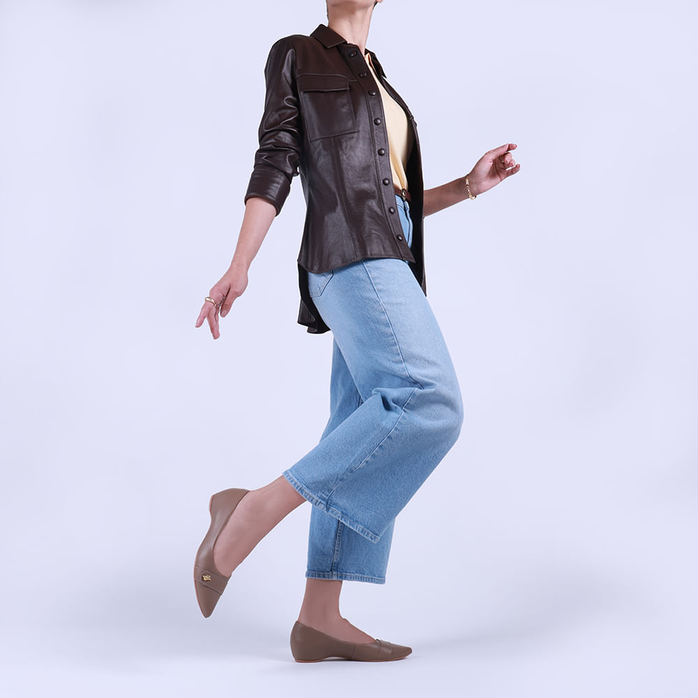 Sapatilha cabedal em couro napa valise na cor fendi. O toque macio do couro abraça os pés, e sua resistência garante conforto em cada passo por muito mais tempo.
