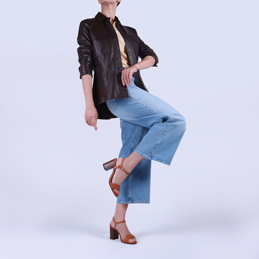 Sandália cabedal em couro napa valise na cor ocre. O toque macio do couro abraça os pés, e sua resistência garante conforto em cada passo por muito mais tempo.