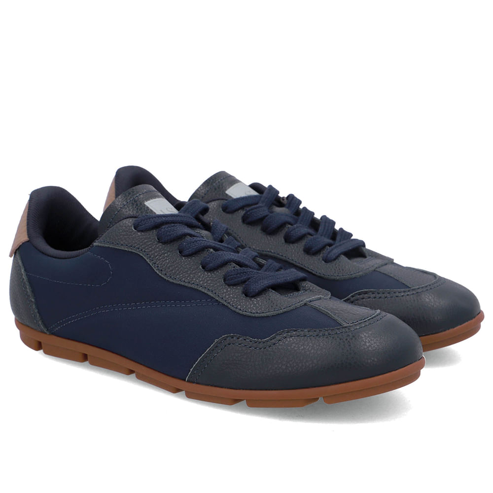 Tênis cabedal em couro granatto e tecido na cor new blue com detalhe em relax catalano fendi. Sola que se adapta ao seu movimento. Ultraflexível, garantindo mais mobilidade em cada caminhada.