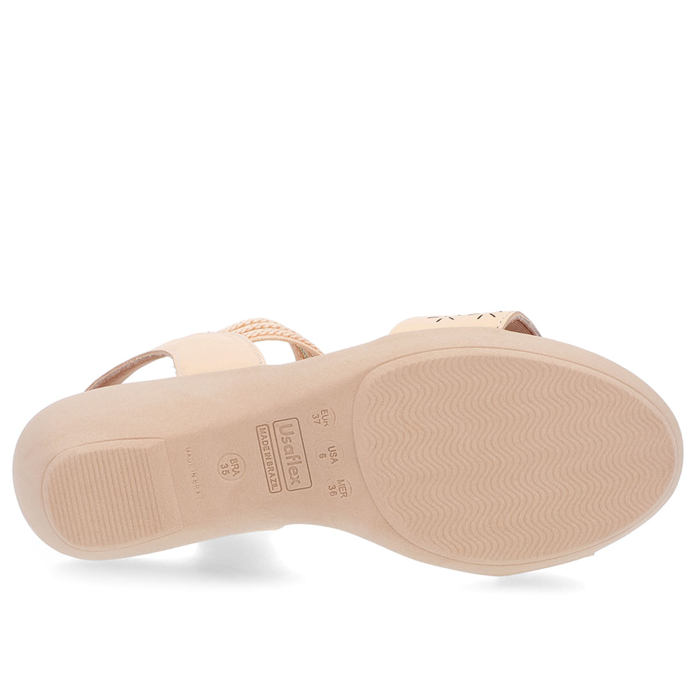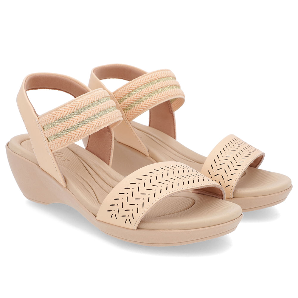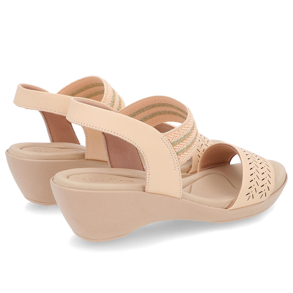 Sandália cabedal em couro napa valise na cor pessego suave fechamento elástico. O modelo possui tecnologia Calce Fácil, com modelagem inteligente em adaptar o calçado a ergonomia dos pés.