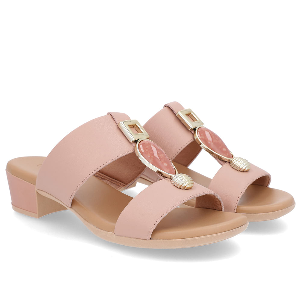 Tamanco cabedal em couro napa valise na cor rose duna detalhe enfeite. O modelo possui tecnologia Couro, com conforto, maciez e durabilidade.