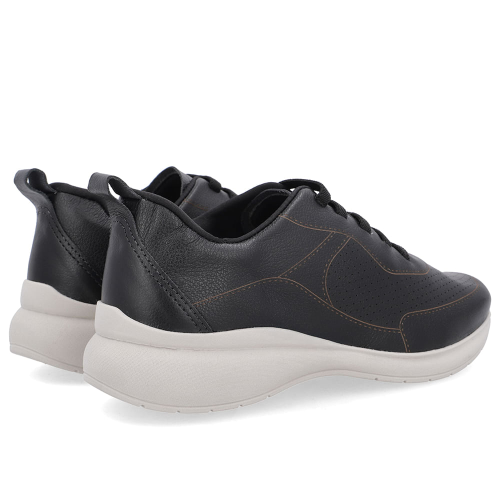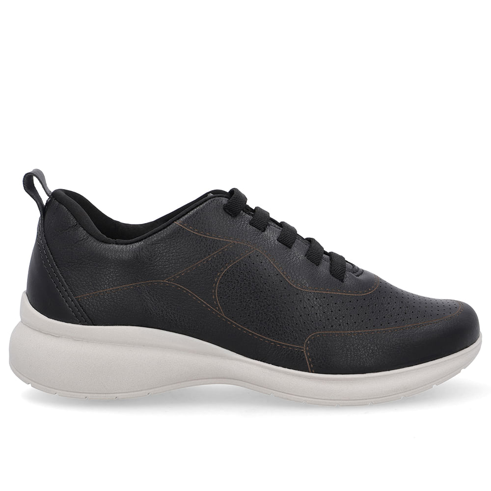 Tênis cabedal em couro napa tênis preto. O modelo possui tecnologia Calce Fácil, com modelagem inteligente em adaptar o calçado a ergonomia dos pés.