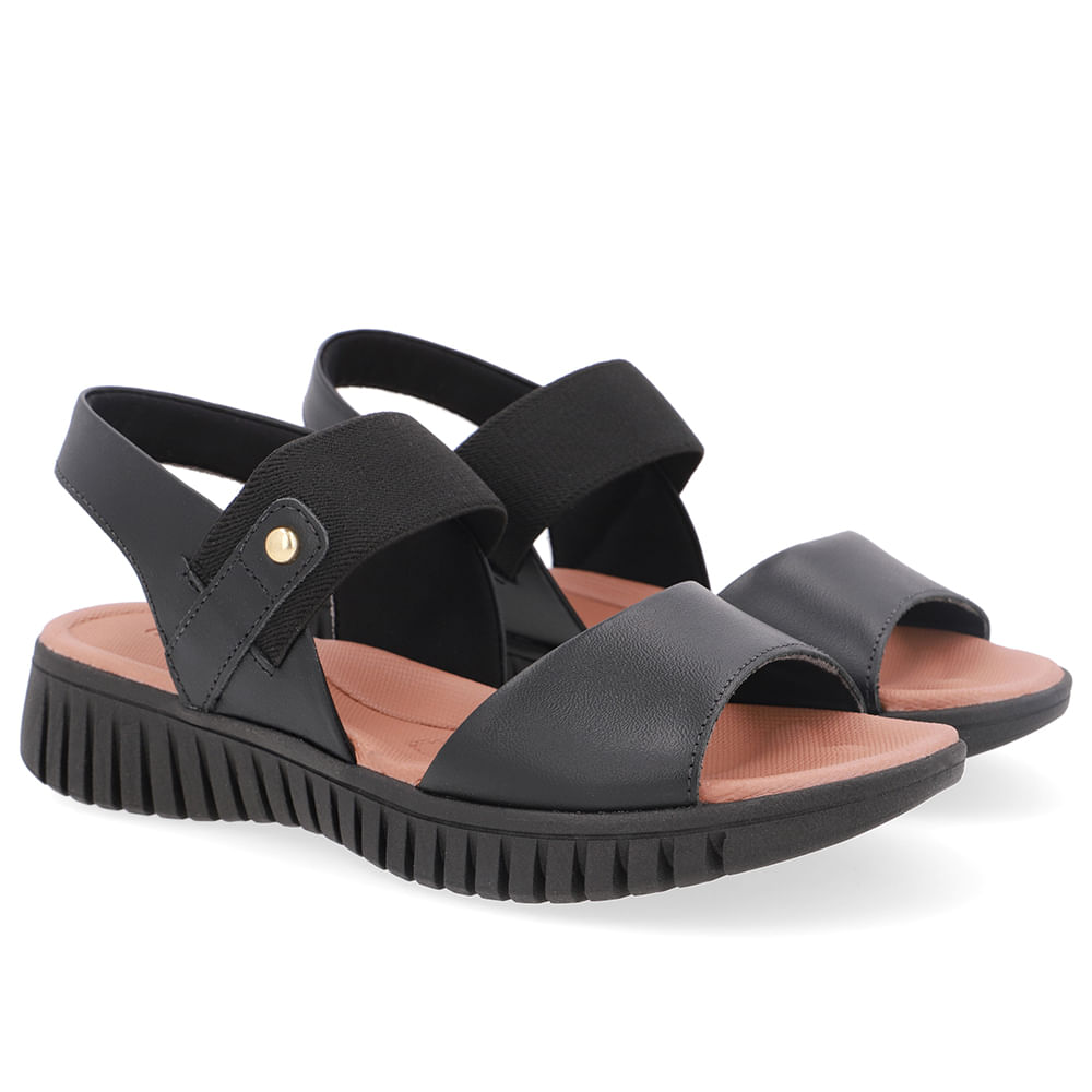 Sandália cabeadal em couro napa valise na cor preto detalhe em elástico. O modelo possui tecnologia Calce Fácil, com modelagem inteligente em adaptar o calçado a ergonomia dos pés.