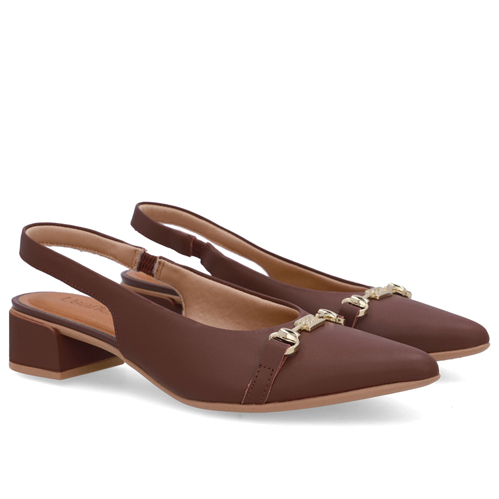 Slingback Vermelho Couro Bico Fino Bridão